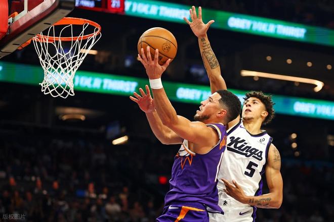 太阳今天一度落后国王20分,布克上半场投篮12中5,罚球7中4,得到14分5篮板,苦苦支撑。