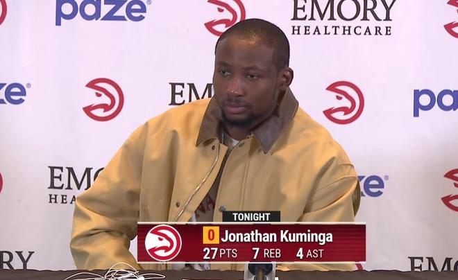 在老鹰生涯首秀中,库明加替补出战24分钟,投篮12投9中、三分4中3轰下27分7篮板4助攻2抢断,在场正负值为+16,得分创赛季新高,比赛中,他多次咧嘴大笑,显然非常开心。
