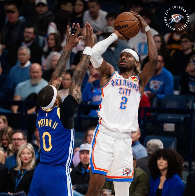 雷霆队的亚历山大得到27分、5个篮板和5次助攻,乔得到18分,K-威廉姆斯得到13分和7个篮板,威廉姆斯得到9分和14个篮板,华莱士得到9分。勇士队的桑托斯得到22分和11个篮板,波杰姆斯基得到17分、6个篮板和6次助攻,格林得到16分和5次助攻,佩顿得到7分和12个篮板。