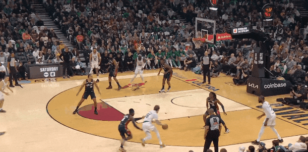 马祖拉痴迷三分球众所周知,但今天凯尔特人活用了空间。沙伊曼三分球6中4,但全场最佳一球却是他突破后左手钩射: