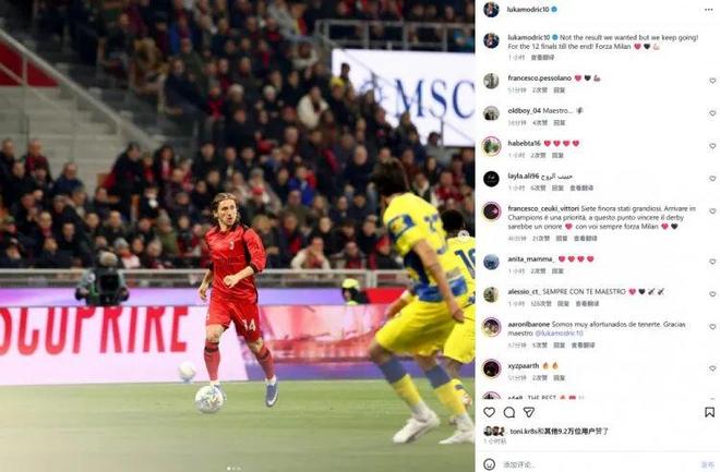 赛后莫德里奇也在个人社媒发文鼓励球队写道:“比赛结果不是我们想要的,但我们会继续加油,最后12场都要当做决赛对待直到最后,米兰加油!”