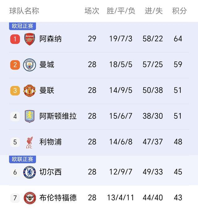 切尔西则遭遇联赛3轮不胜,积45分位列英超第6,距离第4的维拉有6分之差。