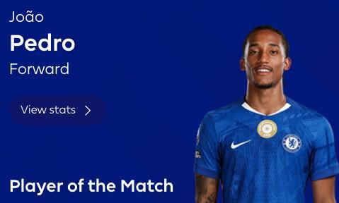 三球一助,若昂-佩德罗当选切尔西客战维拉全场最佳球员